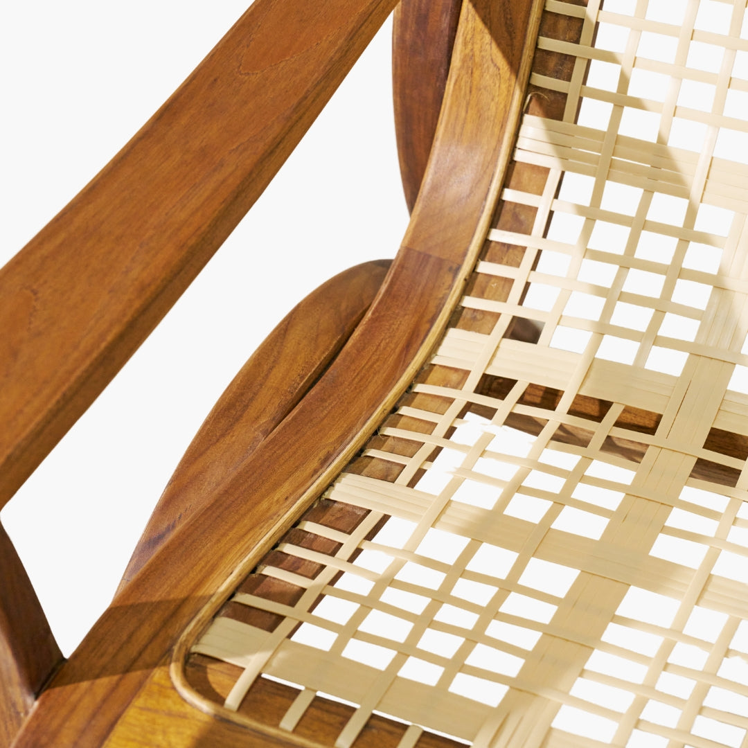 Wood: TeakDetail: Outdoor Resistant FibersDimensions: 85cm L x 107.5cm W x 103cm H